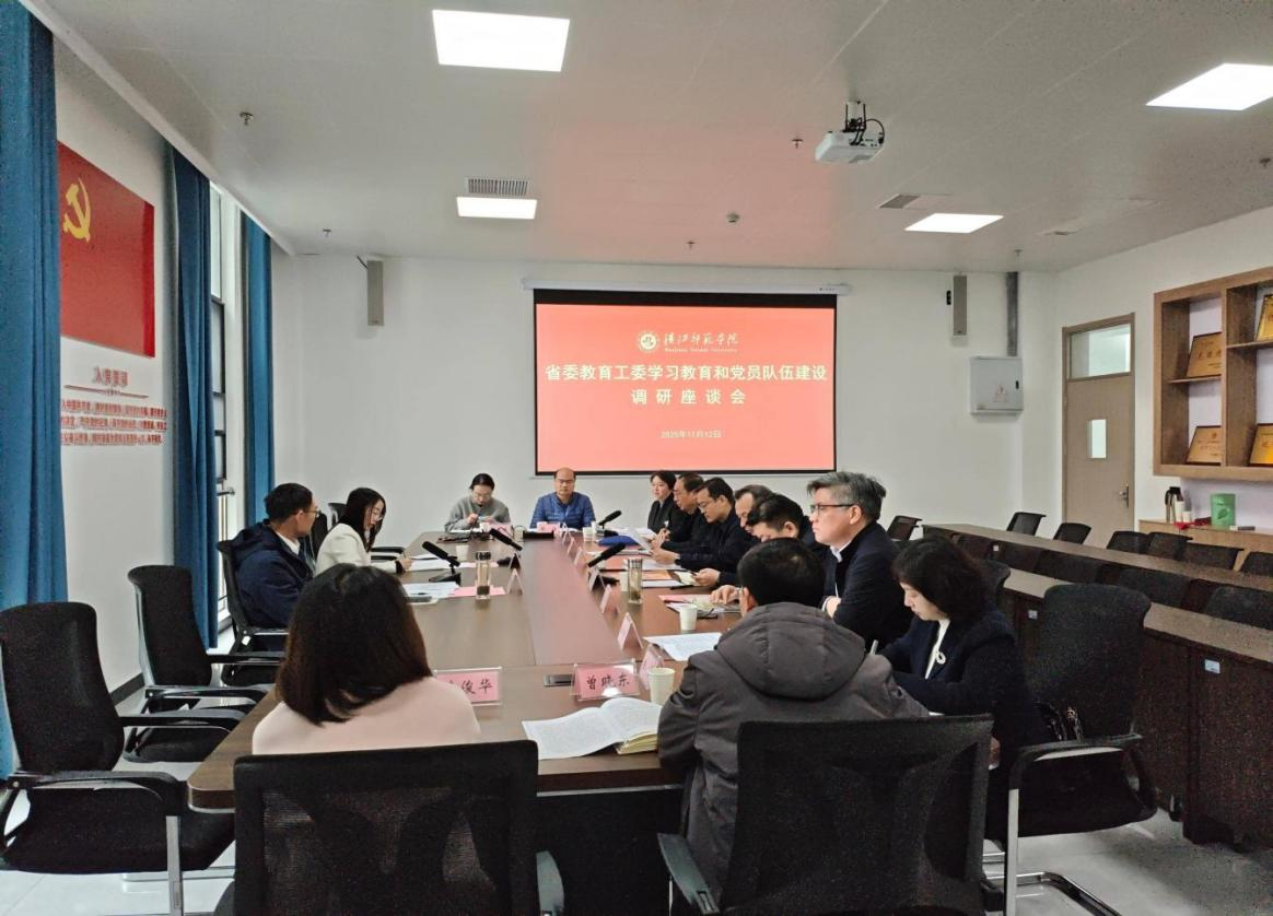 11月12日,省委教育工委组织处杨作成、王幸一行来校,就学习教育和党员队伍建设开展调研,党委副书记周明华在明理楼506会议室热情接待了调研组一行。